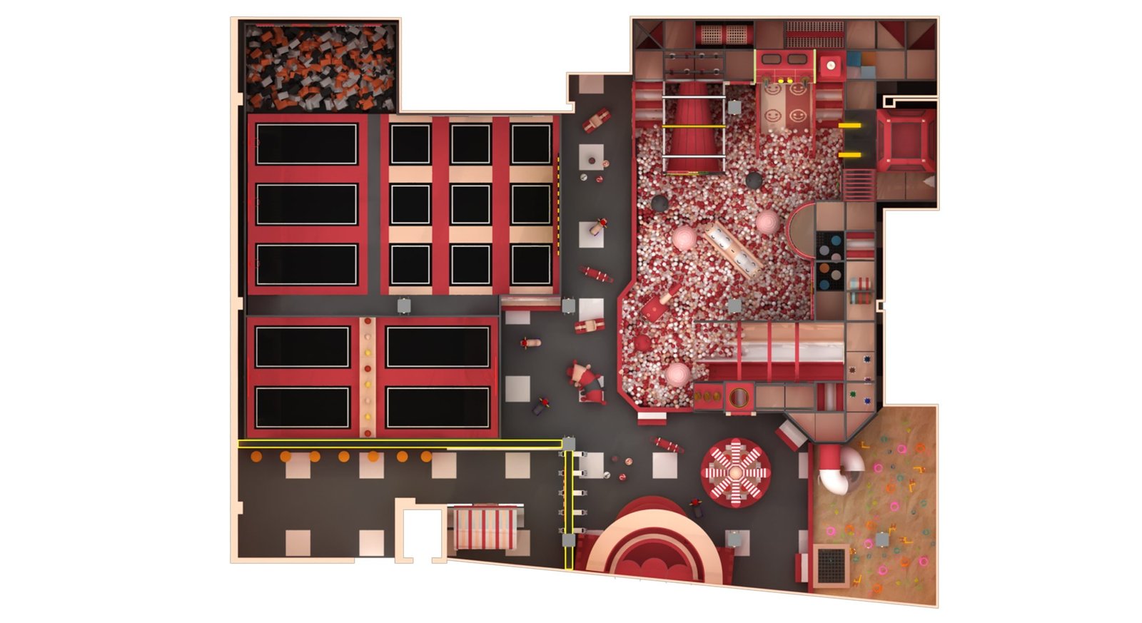 This 700-square-metre children's adventure trampoline park offers ample space for youngsters to engage in active play and endless fun, encouraging them to leap, explore and challenge themselves within a secure environment. Its interior layout is fully customisable; we provide bespoke solutions tailored to your specific requirements.