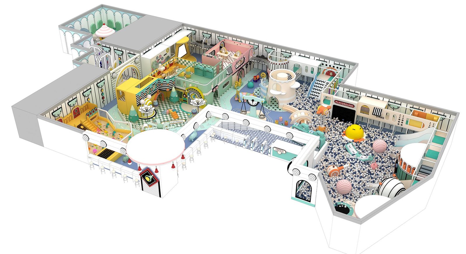 Space Maximization: Smart layout and zoning maximize space efficiency, creating more play value for kids.