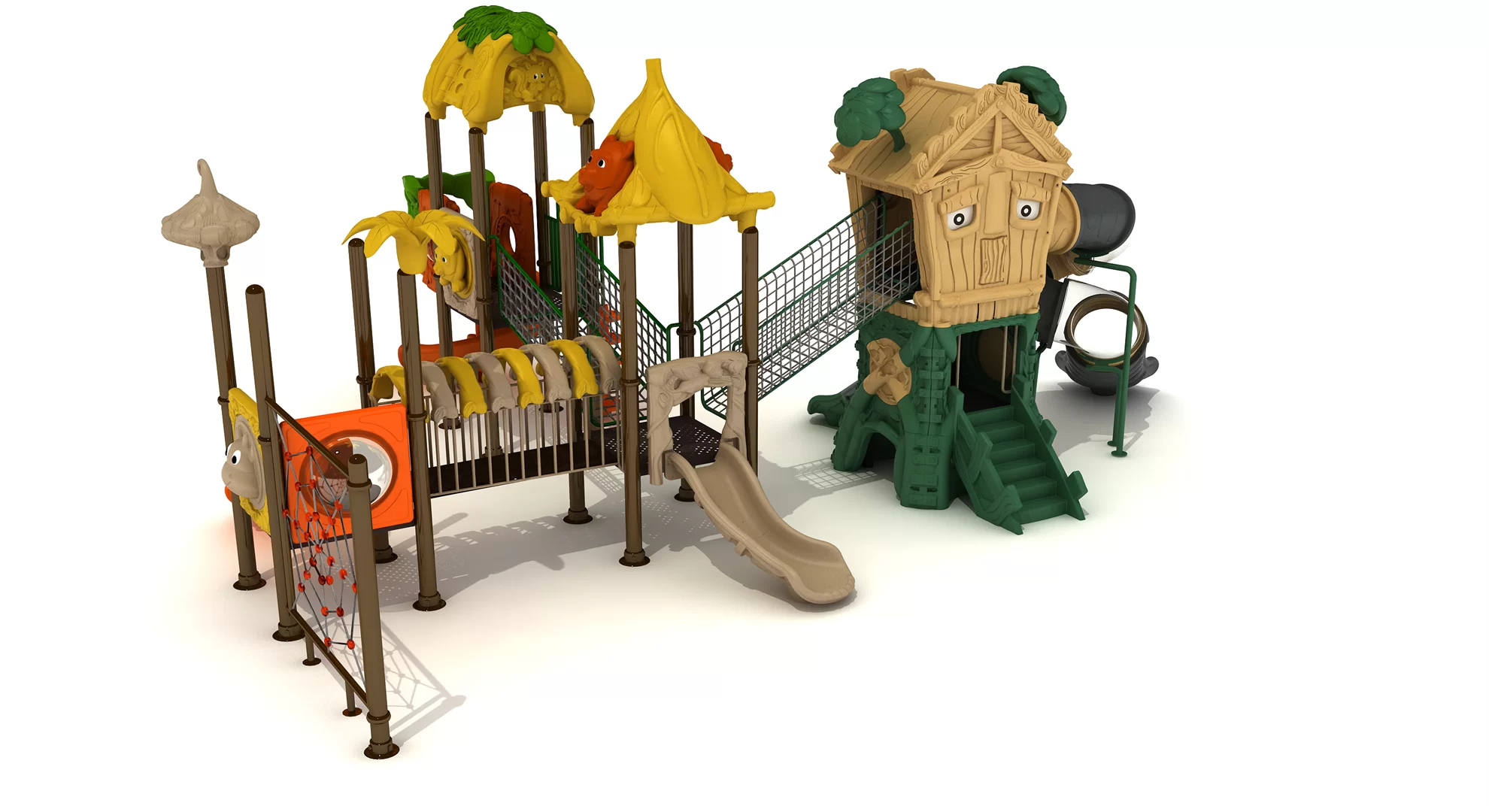 Outdoor Treehouse Playground with Spiral and Tube Slides