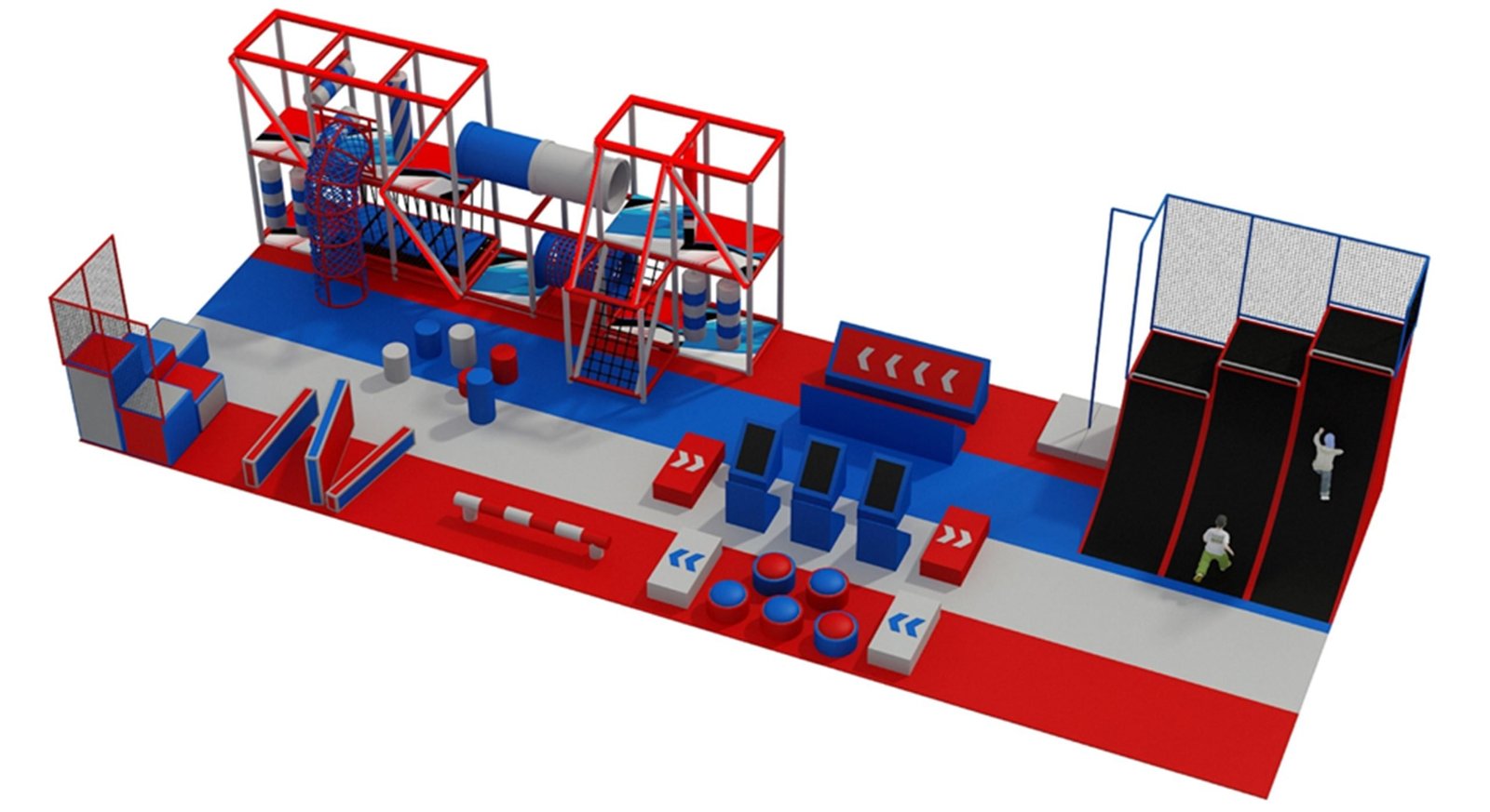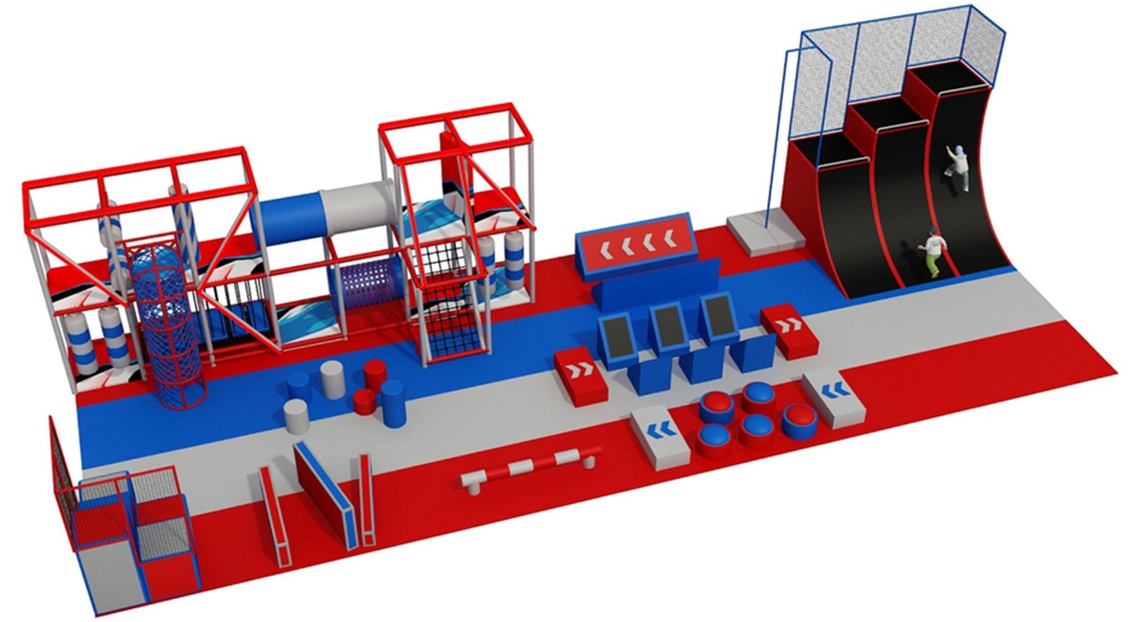 Trampoline Obstacles - Jump-based challenges that enhance balance, stability, and body control while adding excitement to the play experience.