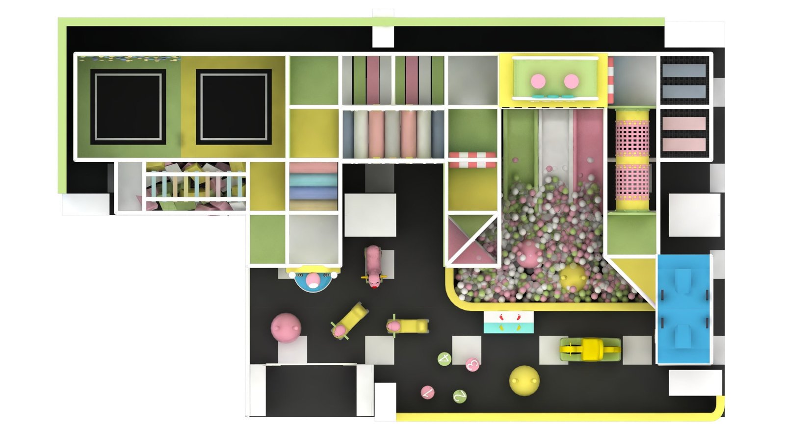 Ball Pit - Colorful and soft ball pit area, enhancing interactive play and sensory development.