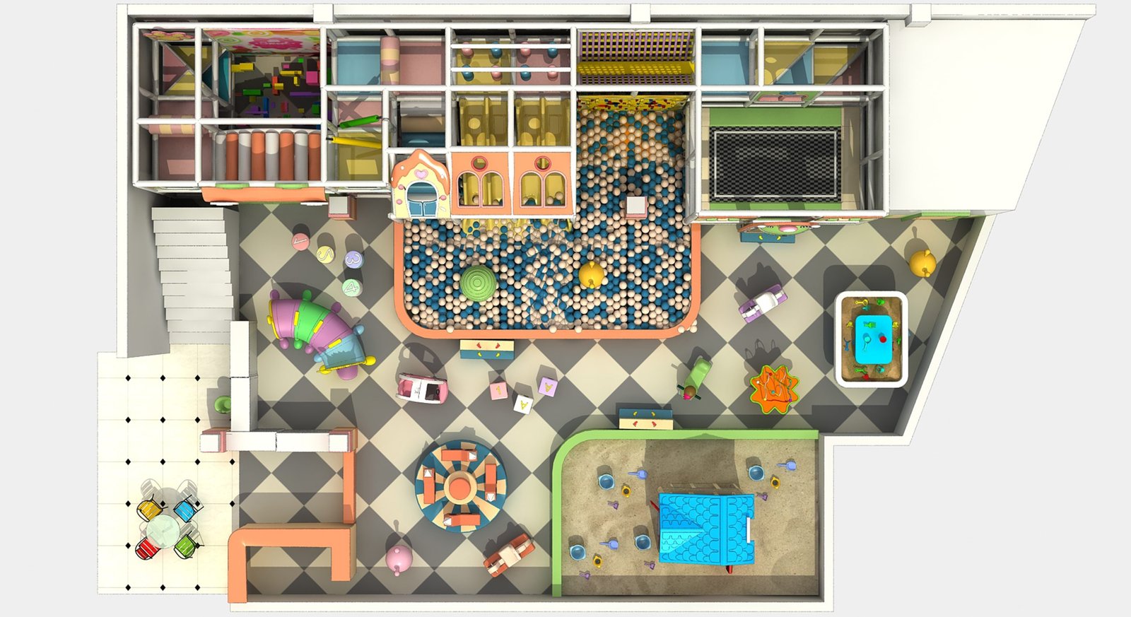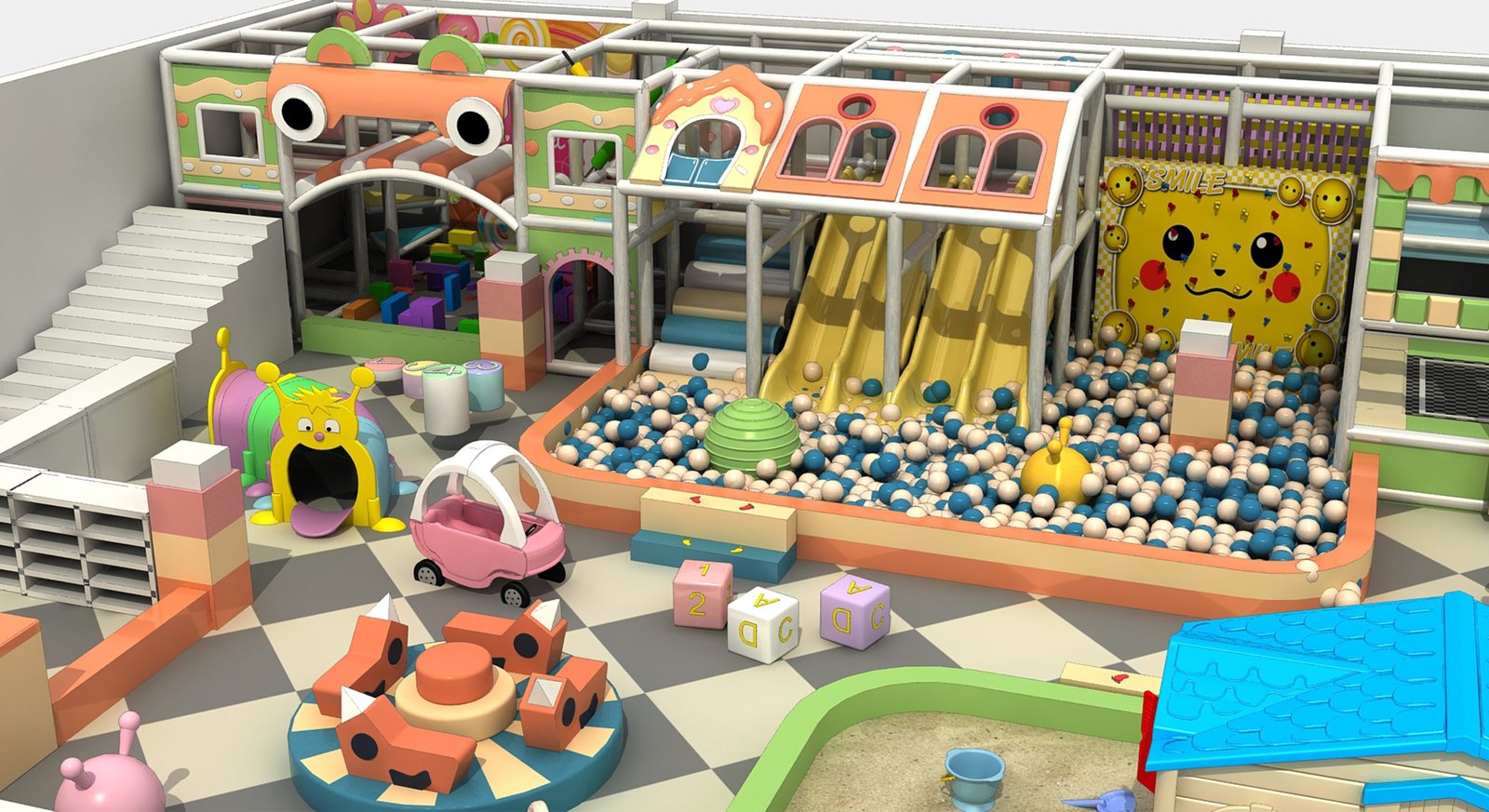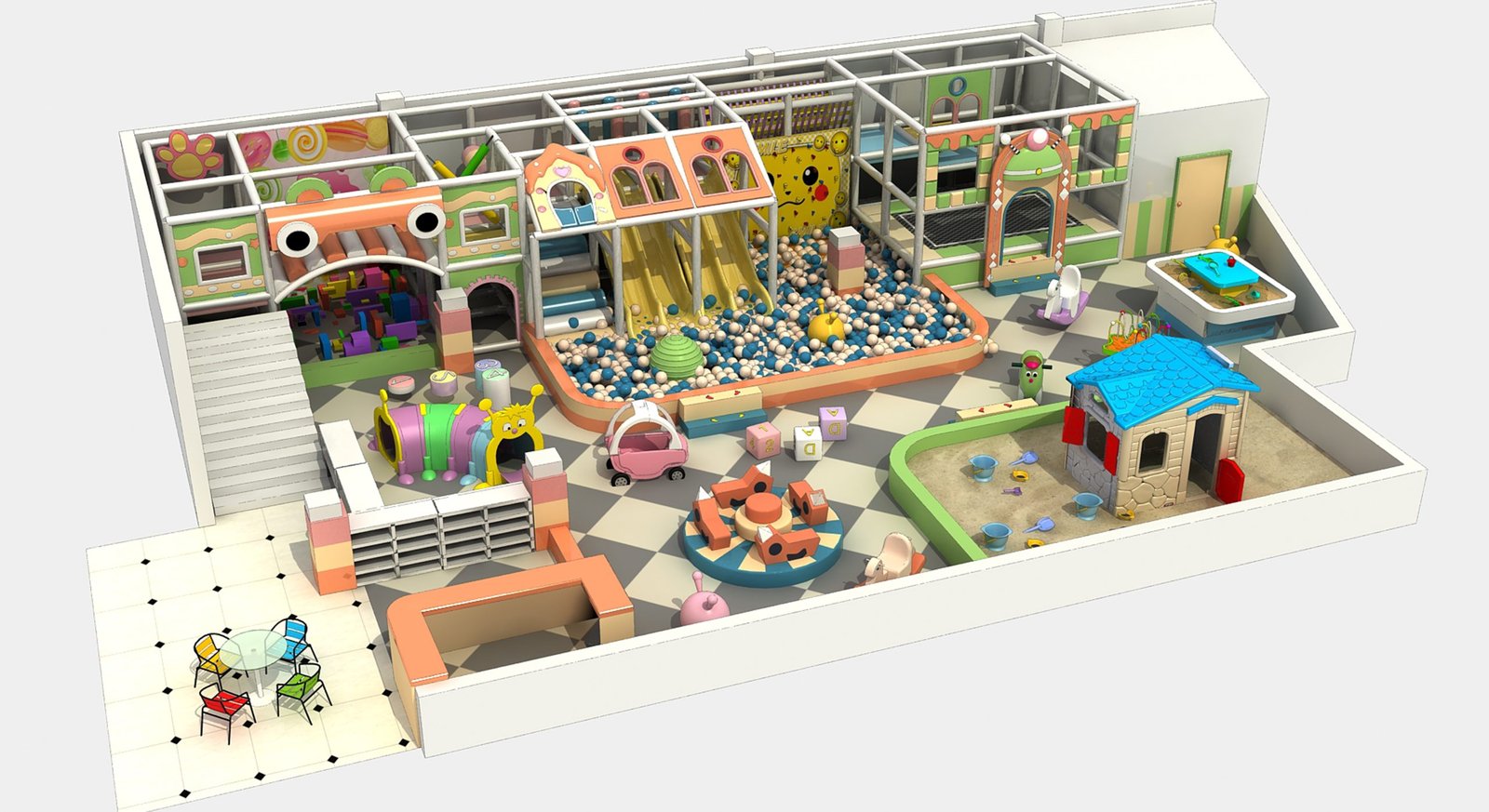 Ingenious spatial planning maximises every square metre within the macaron-themed indoor playground.