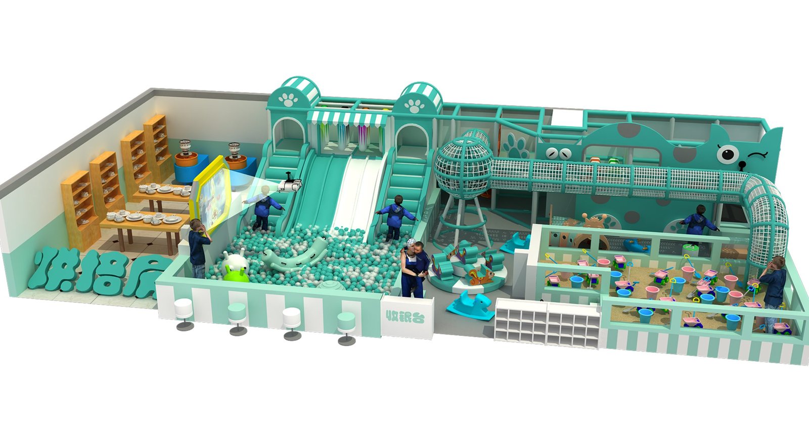 All components can be customized(foam parts, vinyl parts, plastic parts, slides, netting, safety fences, climbing frames, hand cars, ball pits and more.)