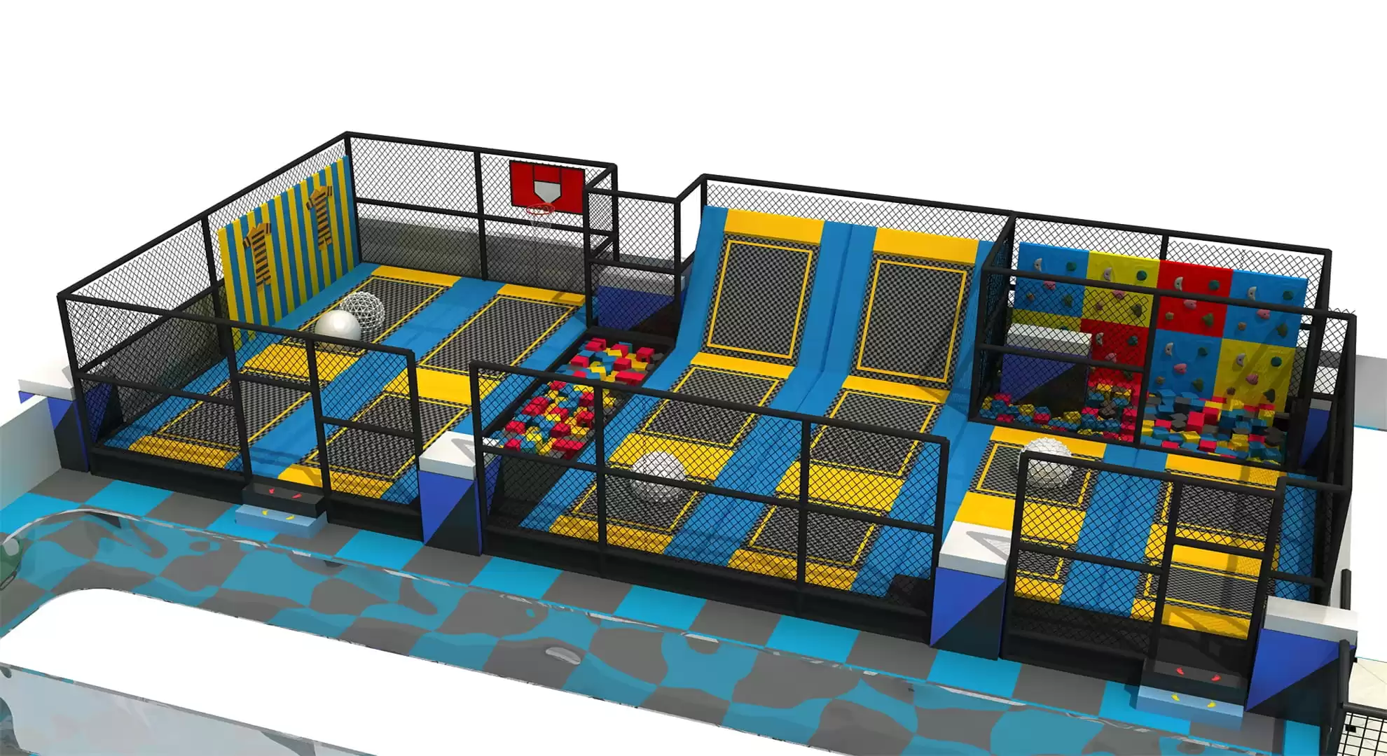 - Climbing Frames, Jumping Trampoline Zone, Ball Pool, Interactive Activity Zones, Slides and Tunnels, Water Fountain, Ride-on Animals, Kids’ Play Area, and more.