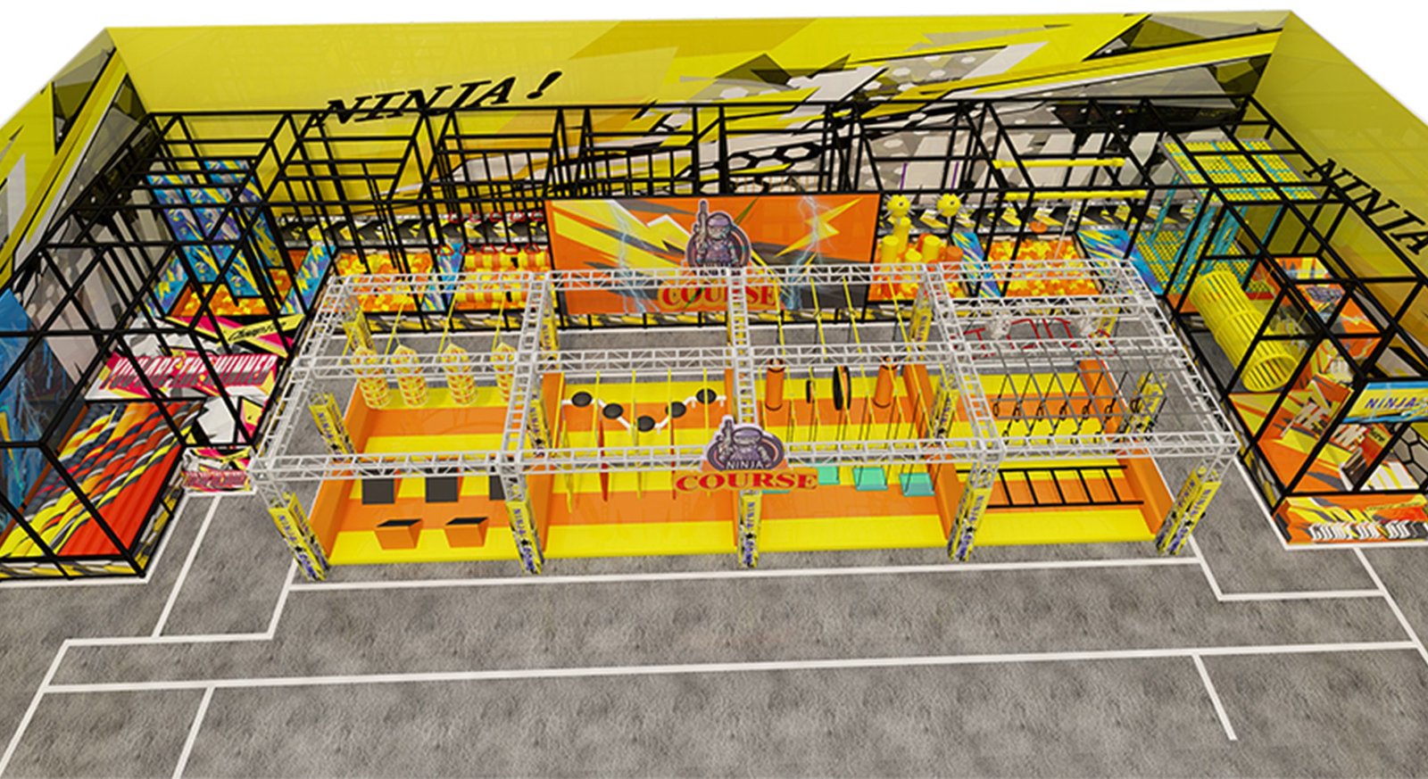 For the Indoor Ninjas Warrior Training Course Amusement Park, we provide high-quality visual renderings and effect displays to showcase the final look and layout of the course before production. These include: