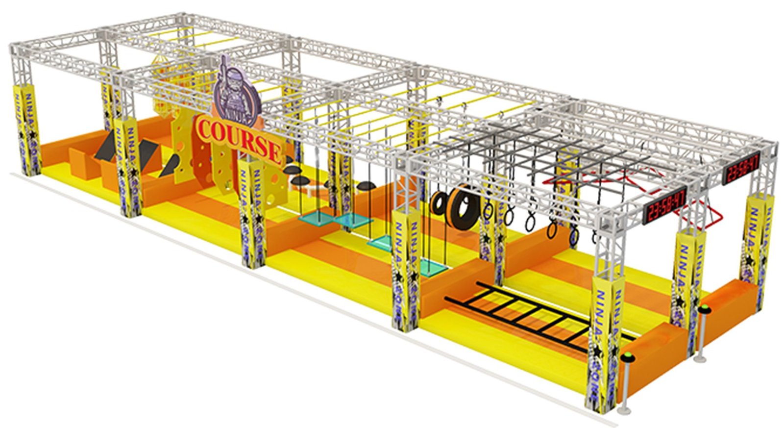 These effect displays allow clients to visualize the finished course, make necessary adjustments, and ensure the Ninjas Warrior course is both safe, functional, and visually appealing before manufacturing.