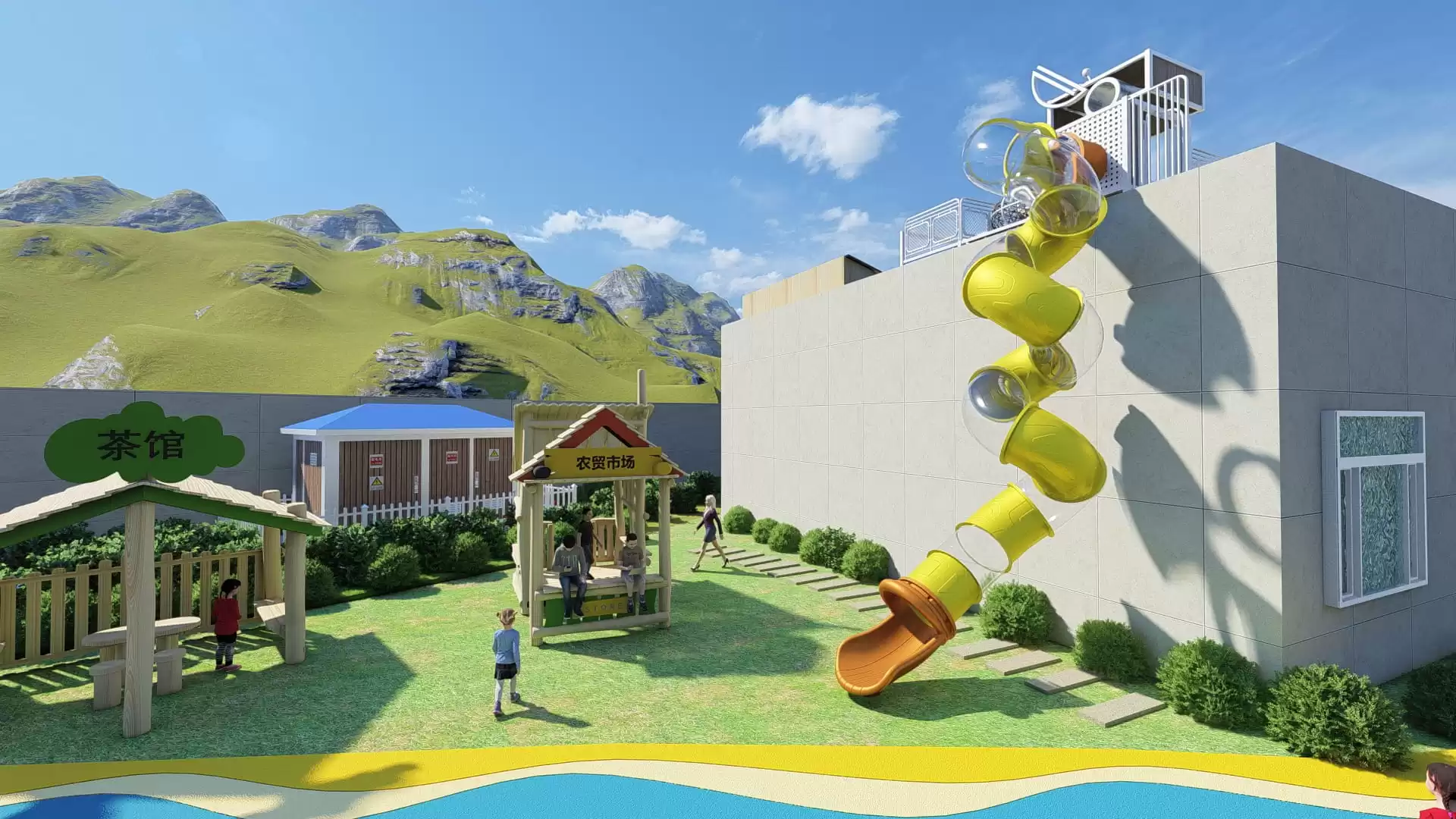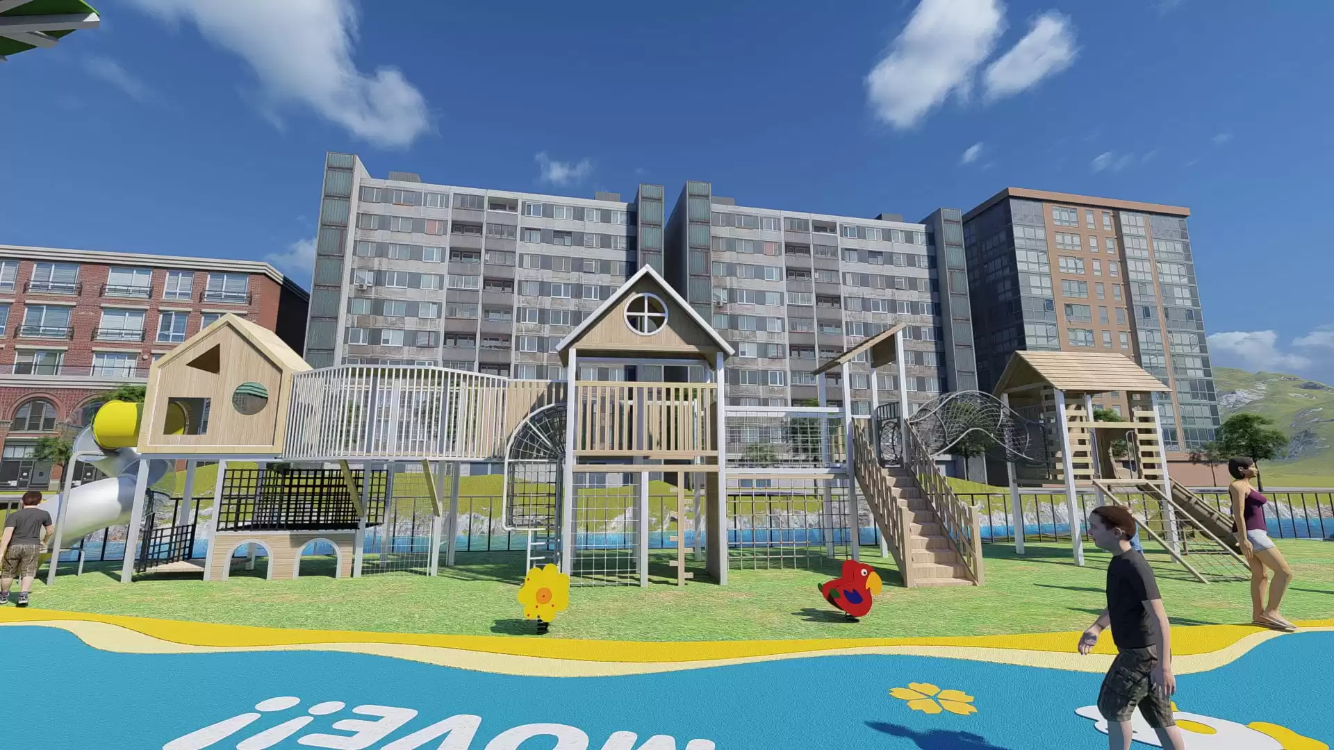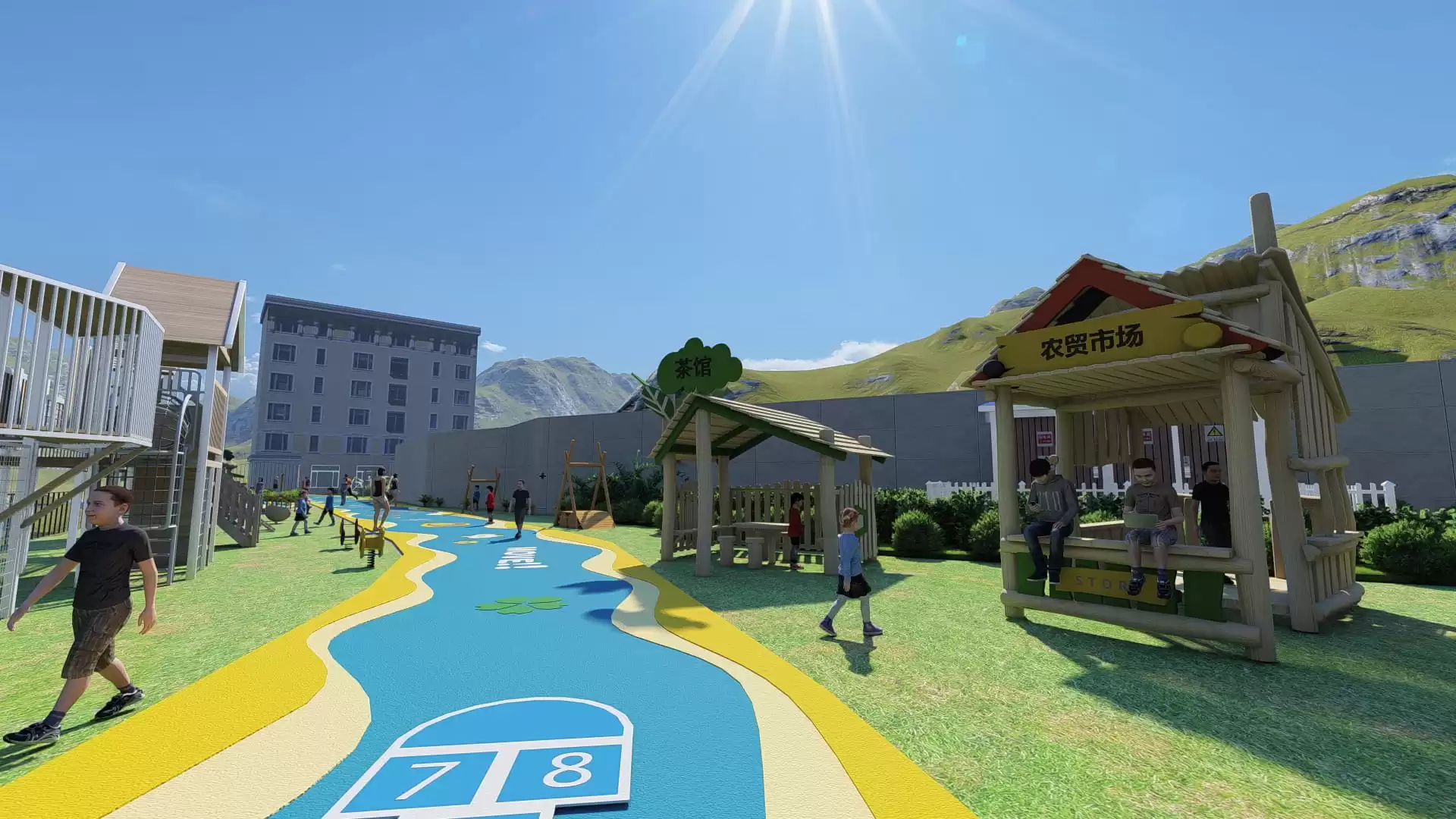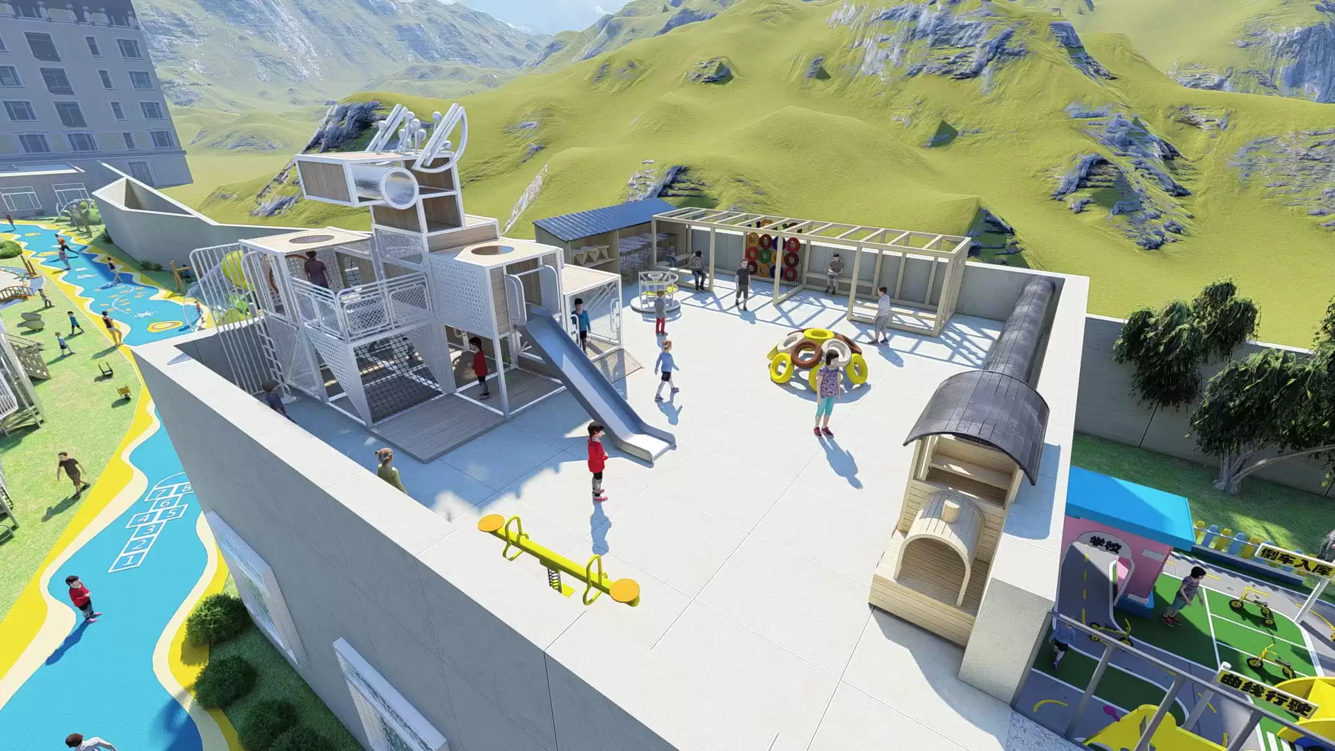 The Terrain Play Area is designed to mimic planetary craters and rocky landscapes, encouraging kids to explore freely. Hammock zones are spread throughout the playground, letting children experience a sense of weightlessness like astronauts in space. A mix of climbing frames and balance beams connects to a central rest area, simulating an exciting space walk. The rest spot in the middle also gives parents a comfortable place to relax and watch.