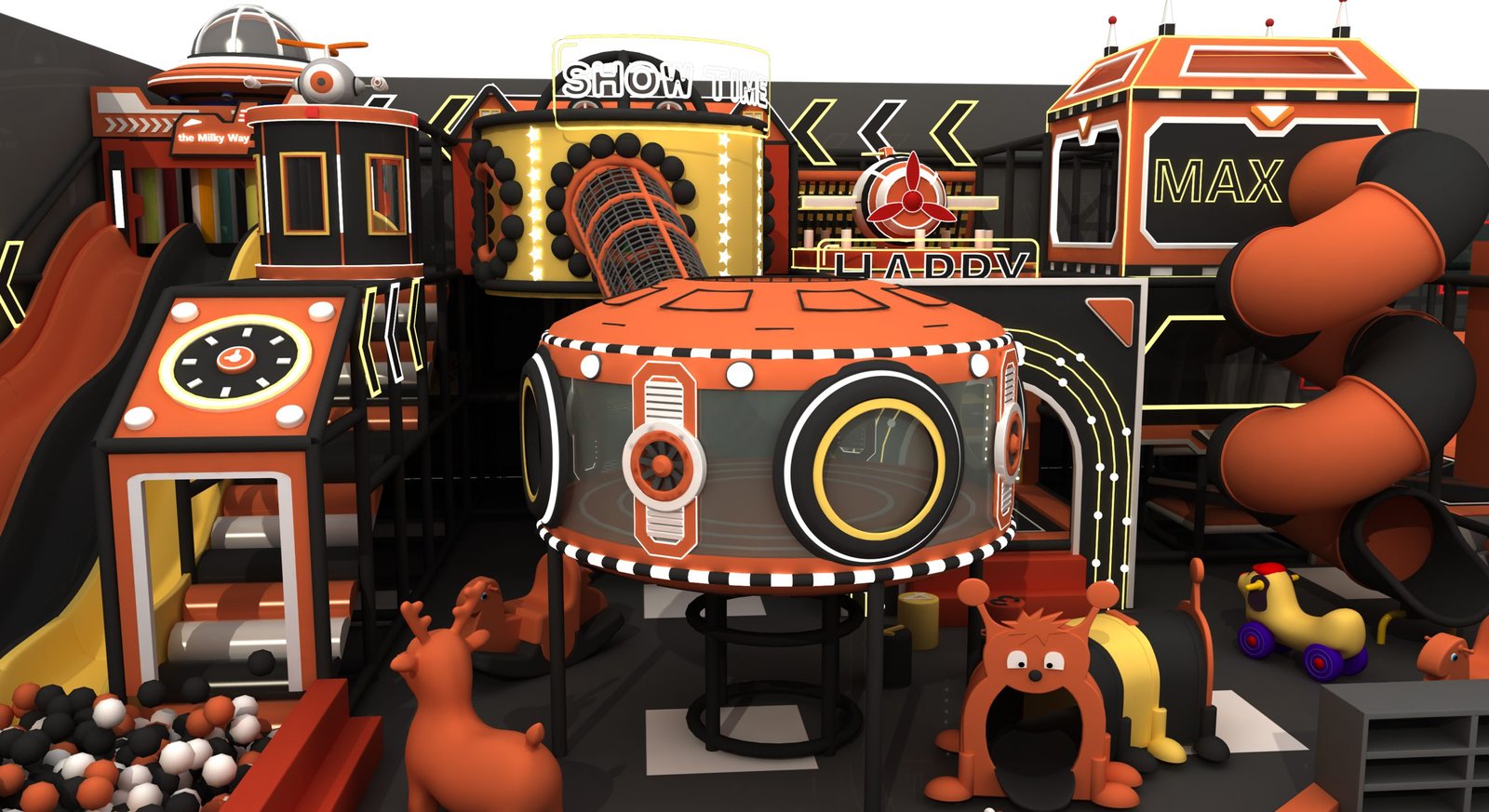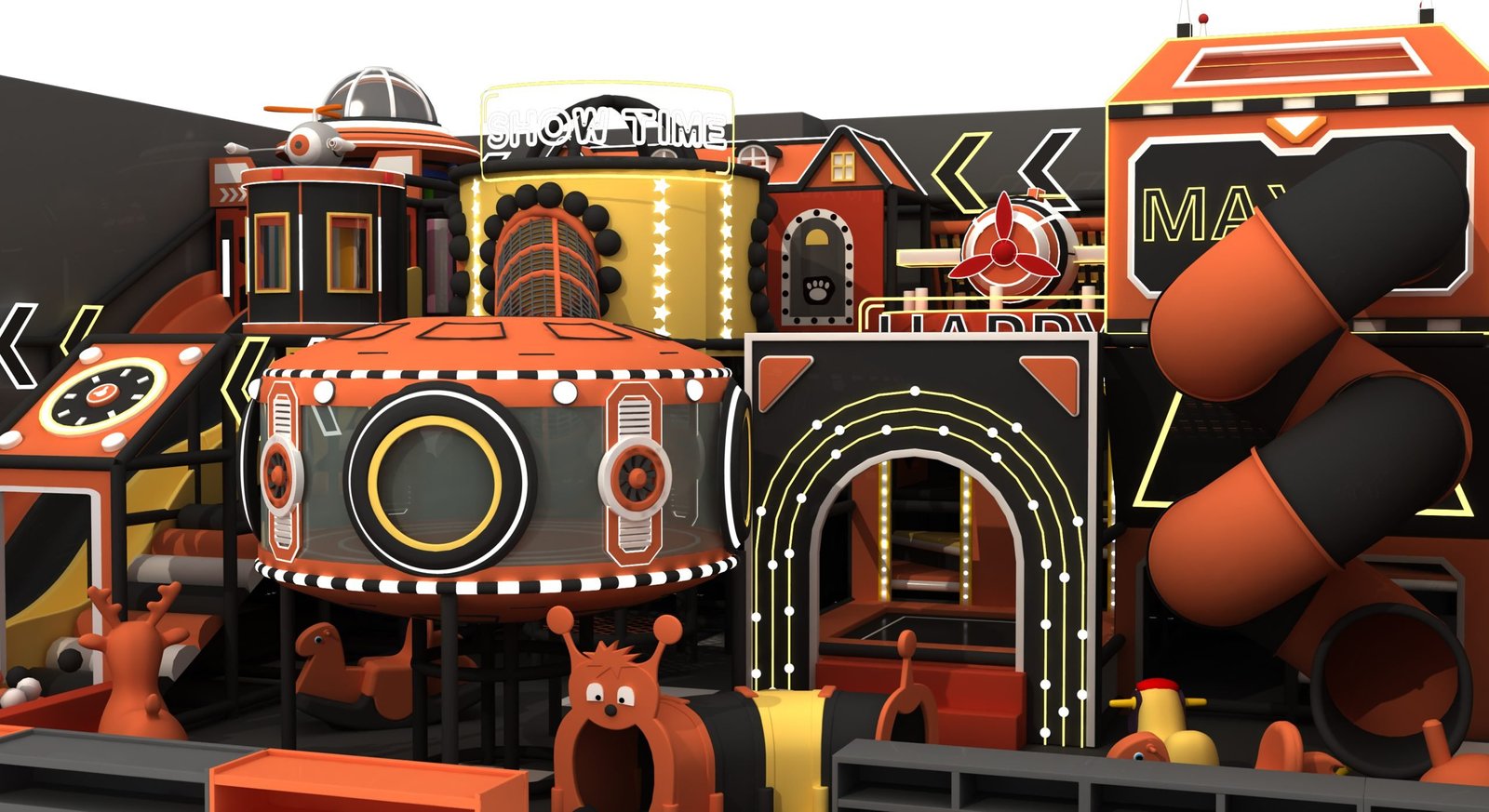Slides – Straight and spiral slides for thrilling adventures.