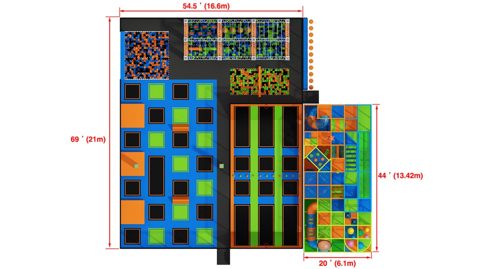 Scalable Systems: Modular designs adapt from big 10,000 sq.ft family fun center layouts to compact 500 sq.ft small indoor play structures, offering flexibility whether you’re building a standalone playground or expanding into a Trampoline Park attraction.