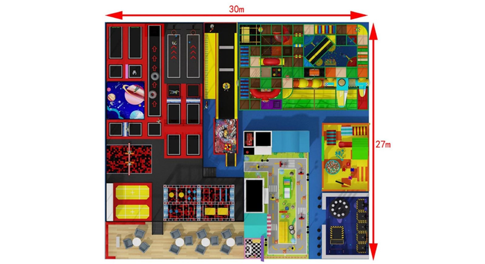 Themed Play Areas – Ocean pools, street-style zones, rest areas, and adventure-themed modules tailored to specific indoor playground concepts.